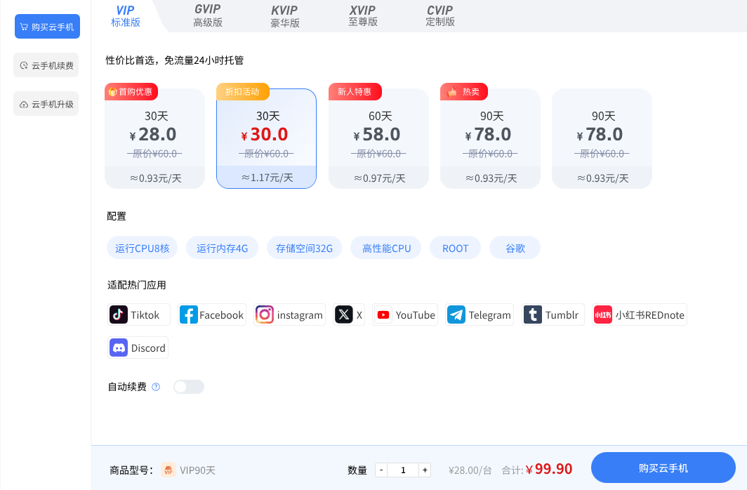 2. 购买云手机