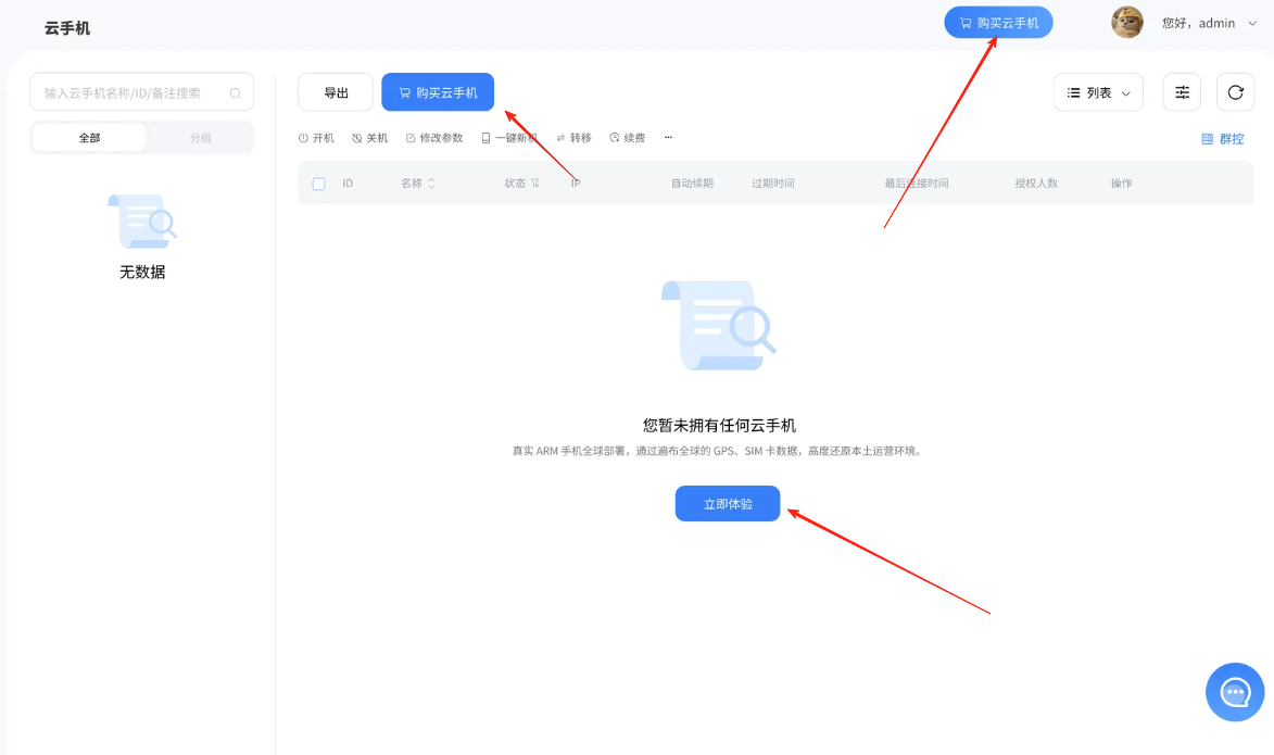方式三:点击右上角的“购买云手机”