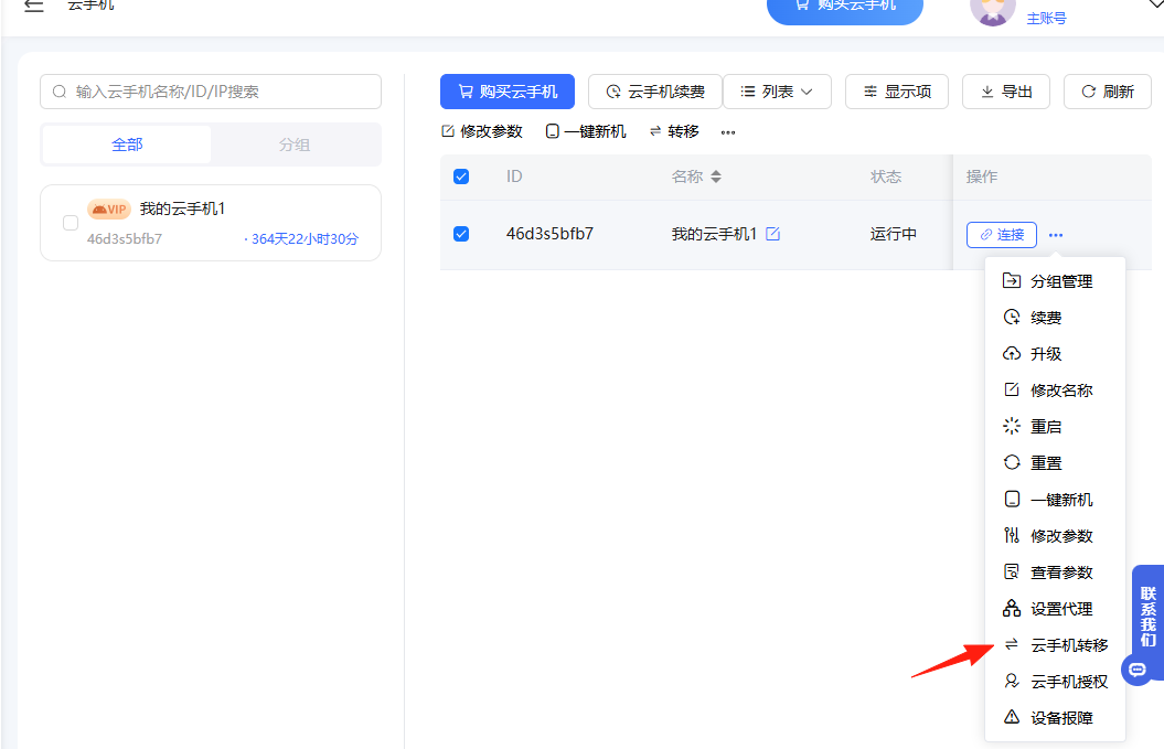 点击右侧的...,选择“云手机转移”