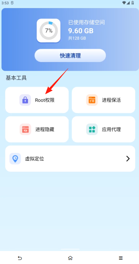 1、云手机支持一键ROOT,在云手机桌面点击“辅助工具”APP点击“Toot权限”按钮。