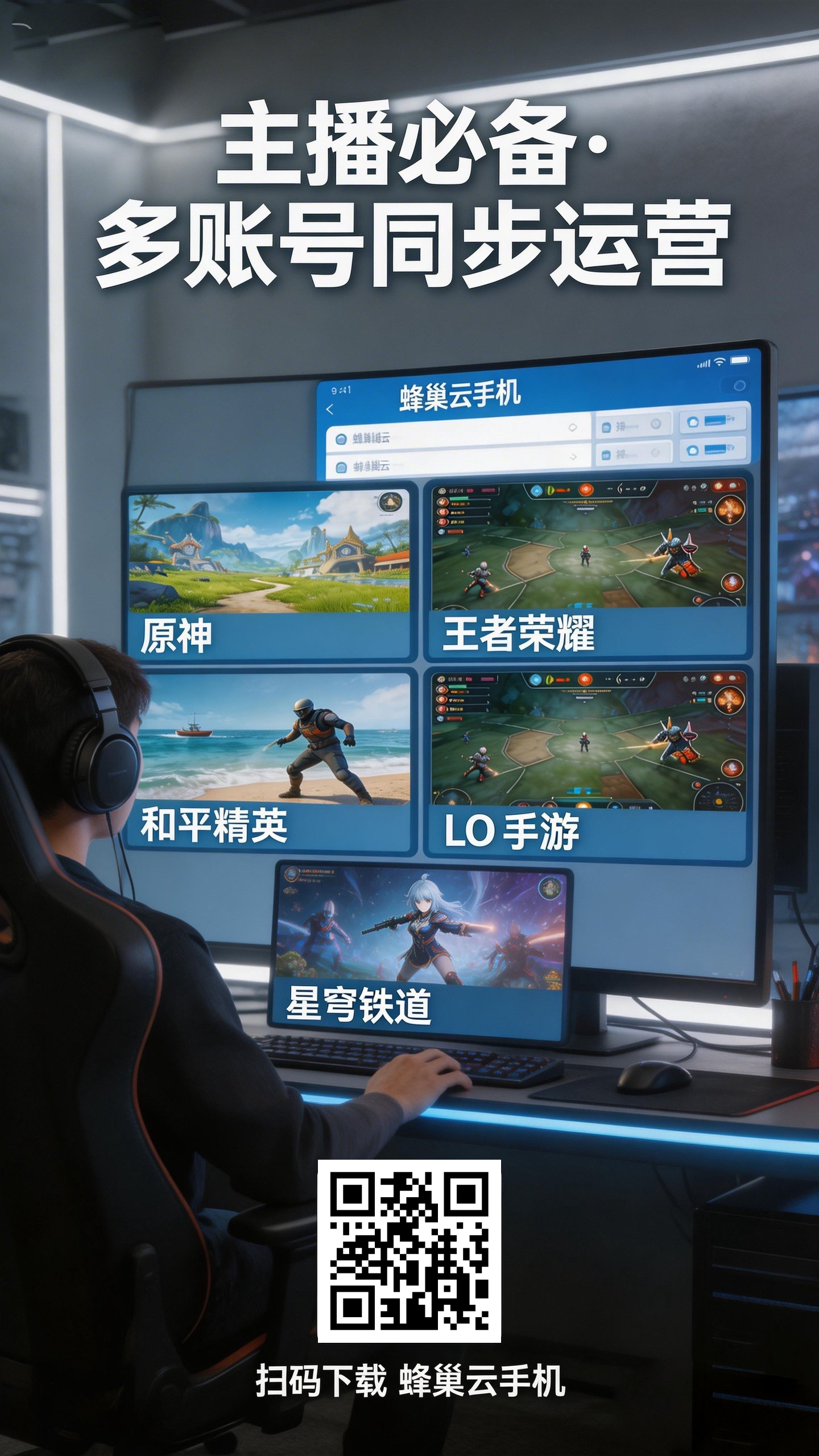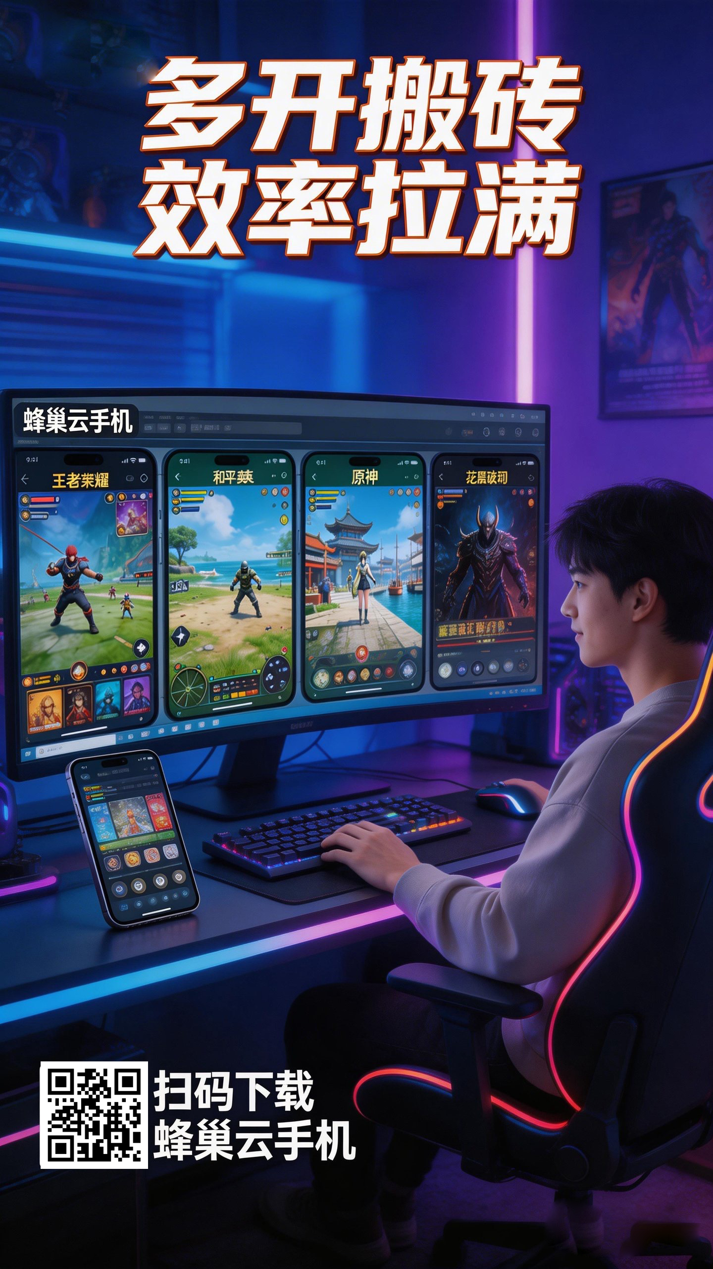 你坐在咖啡馆里,只用一台笔记本电脑,轻松管理着上千个游戏账号。通过一个简洁的群控界面,你一键为所有账号更新脚本、领取日常奖励。每个账号都运行在独立的、拥有本地IP的云端手机里,安全无忧。没有噪音,没有发热,没有天价电费,只有后台稳定增长的收益数字。